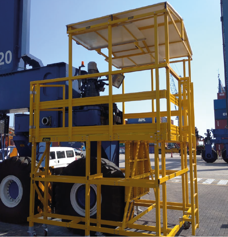 Sistema de acceso especializado para el mantenimiento de grúas encargadas del cargue de contenedores en el puerto de Cartagena. Este sistema garantiza un acceso seguro y ágil, reduciendo tiempos de operación y mejorando la productividad.