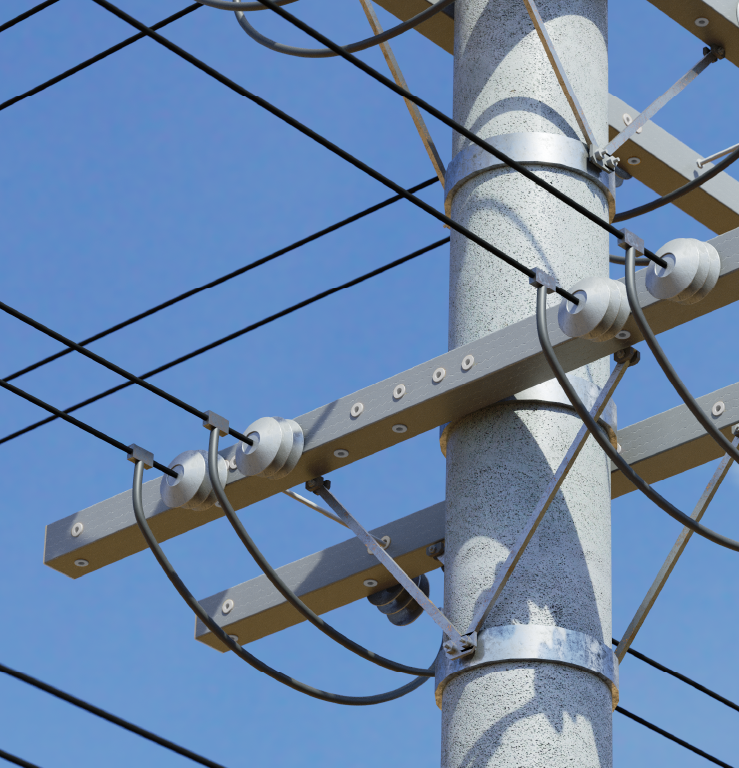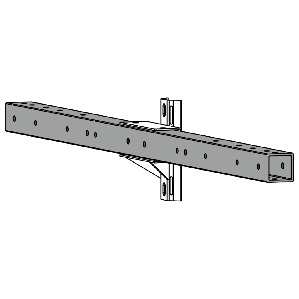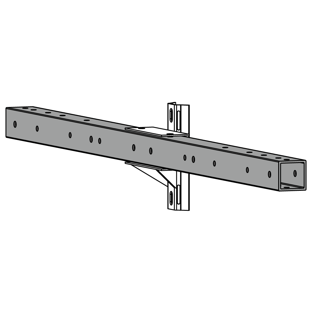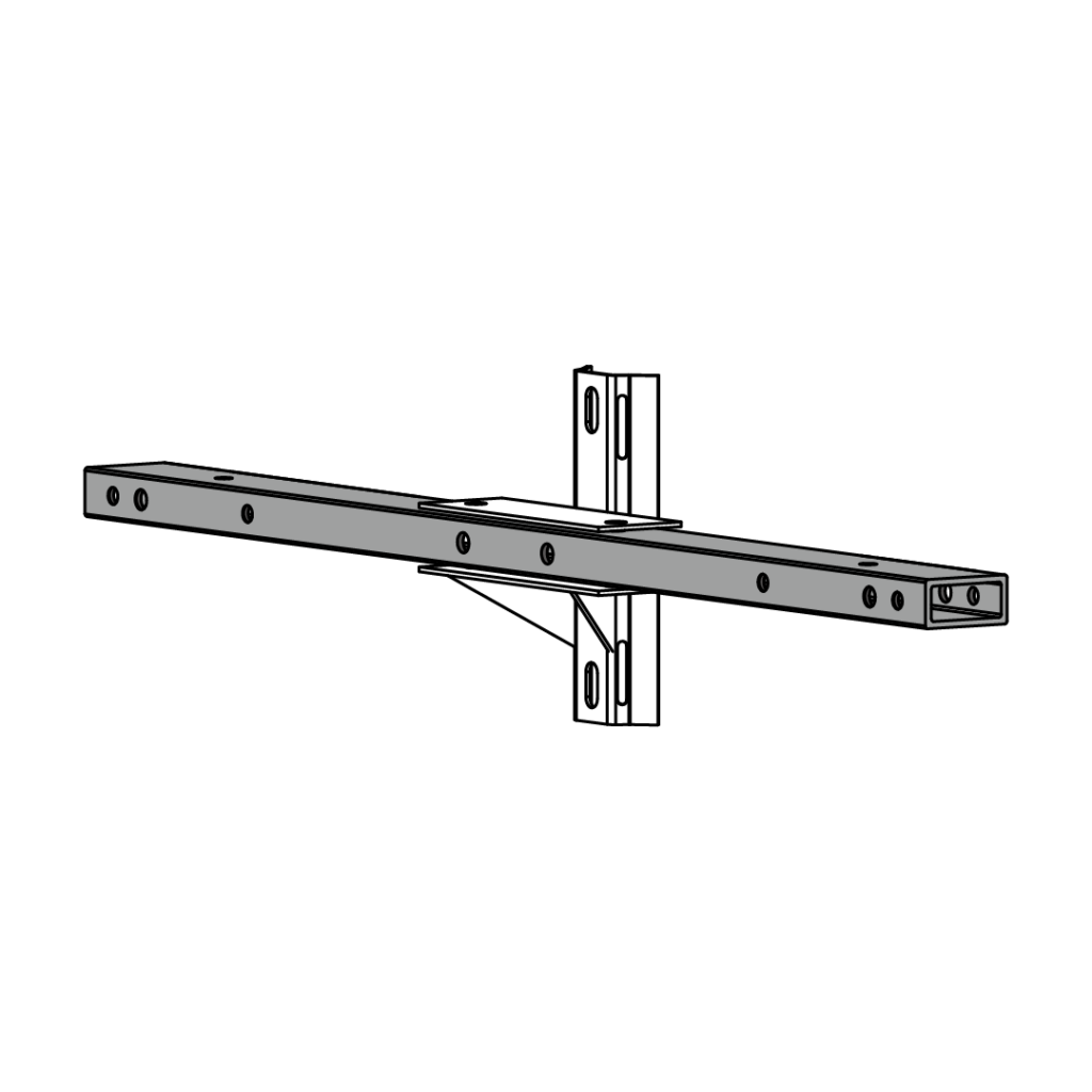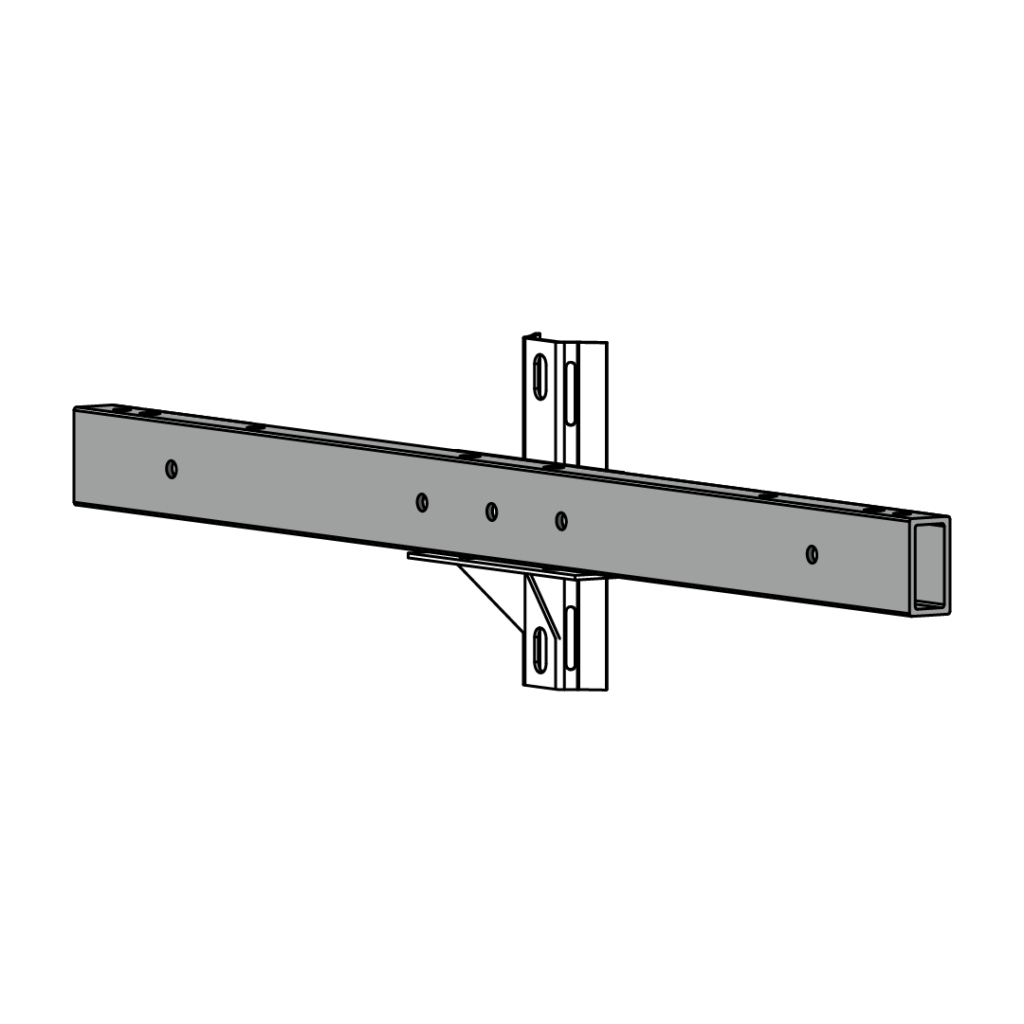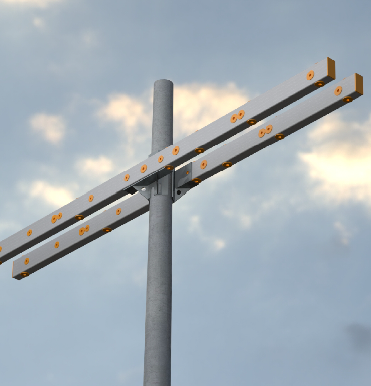 Nuestras crucetas están equipadas con herrajes metálicos de acero galvanizado, optimizados para garantizar un acople estructural preciso y una fijación segura al poste. Las perforaciones y el diseño del herraje pueden adaptarse según los requerimientos del cliente.
